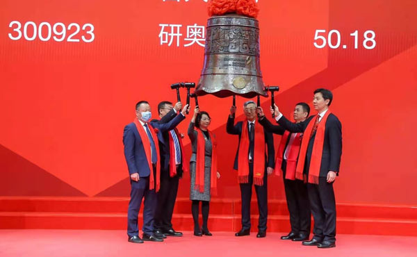 2020年12月24日上午9時25分,伴隨著寶鐘悅耳的敲擊聲,研奧股份在深圳交易所創(chuàng)業(yè)板成功掛牌上市,股票代碼:300923,研奧股份本次發(fā)行價為28.28元/股,發(fā)行總量為1965萬股。研奧股份成功發(fā)行A股并上市,體現(xiàn)了公司同人同心,行穩(wěn)致遠的精神面貌,也預示著公司將借力資本市場邁入新的征程,開啟可持續(xù)發(fā)展新的篇章。公司將牢牢把握國內(nèi)外軌道交通行業(yè)快速發(fā)展的機遇,充分發(fā)揮自身在軌道交通車輛電氣裝備市場的競爭優(yōu)勢,結(jié)合客戶需求和技術(shù)發(fā)展趨勢,不斷鞏固和提升公司在軌道交通裝備領(lǐng)域的市場地位。